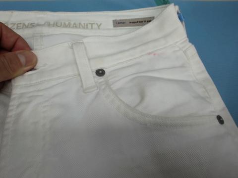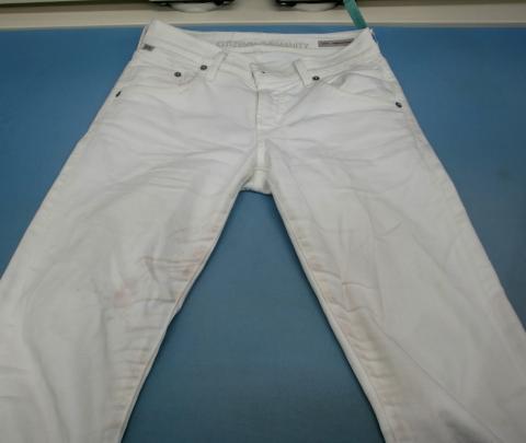 | 【赤ワインをこぼしてしまったホワイトジーンズの染み抜き事例】 |